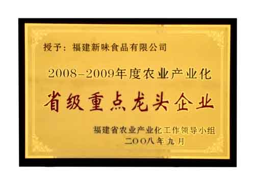 熱烈慶祝我司獲得“2008-2009福建省農(nóng)業(yè)產(chǎn)業(yè)化省級(jí)重點(diǎn)龍頭企業(yè)”榮譽(yù)