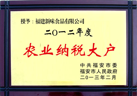 熱烈慶祝我司獲得2012“農(nóng)業(yè)納稅大戶”榮譽(yù)稱號(hào)