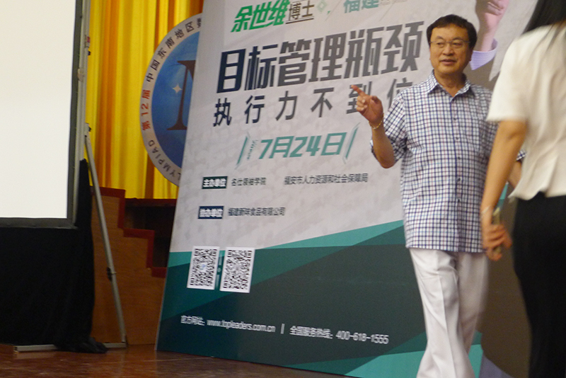 2015年7月24日,福安一中禮堂,余世維博士的“目標(biāo)管理瓶頸 執(zhí)行力不到位”大型講座精彩開講,本次講座由福安市人力資源、社會保障局、福安市公務(wù)員局主辦,福建新味食品有限公司協(xié)辦。